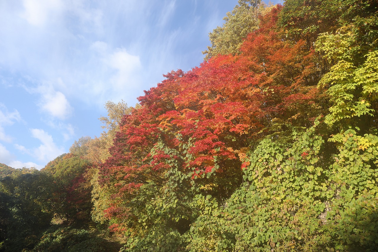 旭山でいちばんきれいに色づくヤマモミジもいよいよ本格化してきました。
