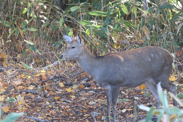 奥山でもないし、鳴いてもいなかったですが、もみじを踏み分けて歩いていました。