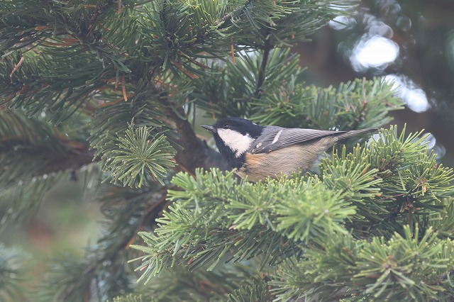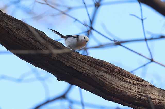 昨日11月8日はお昼前から天気が落ち着き、カラ類の活動が活発になりましたが、12時20分頃「ちびっこ広場北の森」に来たカラ類混群の中に数羽のシマエナガが入っており、「遊具広場」方向に飛び去りました。
