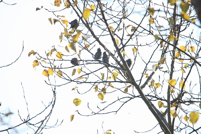 11月8日の野鳥観察会の際に、園内で「ヒーヒー」というヒレンジャクの地鳴きが聞かれ、見上げると10羽前後の群れが飛んでいるのが見えました。