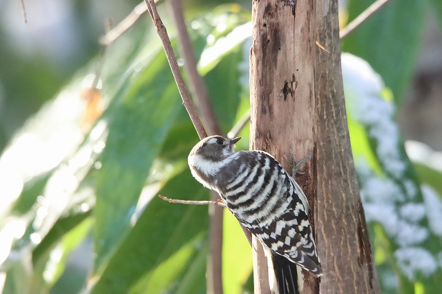 園内で見る機会は多いですが、11月7日から8日に雪が降って積もり、地面での採餌が難しくなったようで、低い位置ではあまり見られなくなっています。