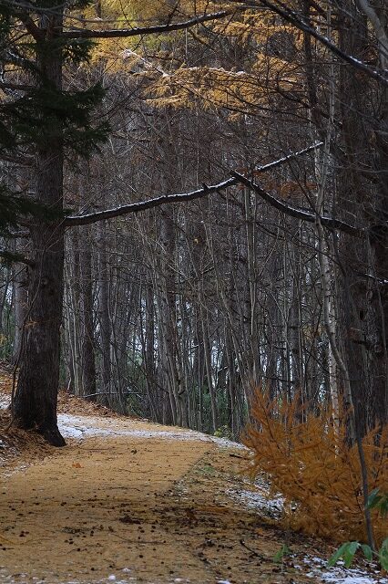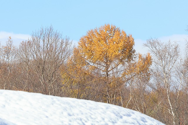 カラマツの黄葉と落葉