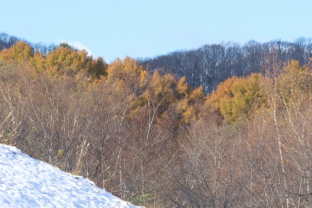 写真は3枚とも雪が降った11月12日に撮影したもので、3枚目は「風の丘U字坂」にて撮影、この直後ここにルリビタキが出ました。
