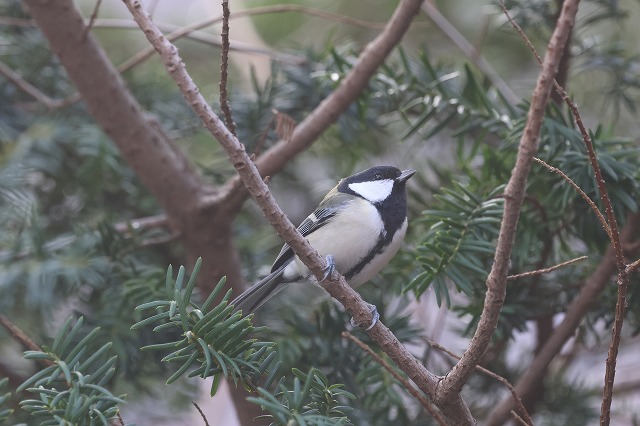 この写真の個体は雌、警戒心が強いシジュウカラにしては珍しく、7、8mと比較的近い距離で5秒くらい固まっていました。