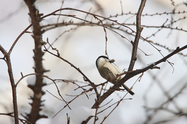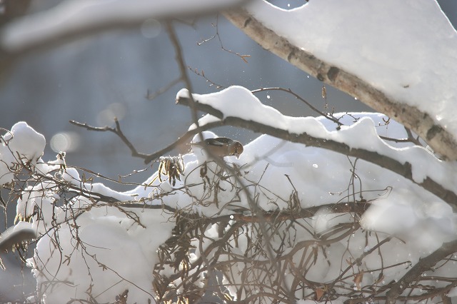 今週は、写真のように数羽でシラカンバの種子を食べるようすが何度か見られましたが、今冬は今のところマヒワとベニヒワがいないので、シラカンバの種子を食べる野鳥はヒガラ以外はほとんどいない状況です。