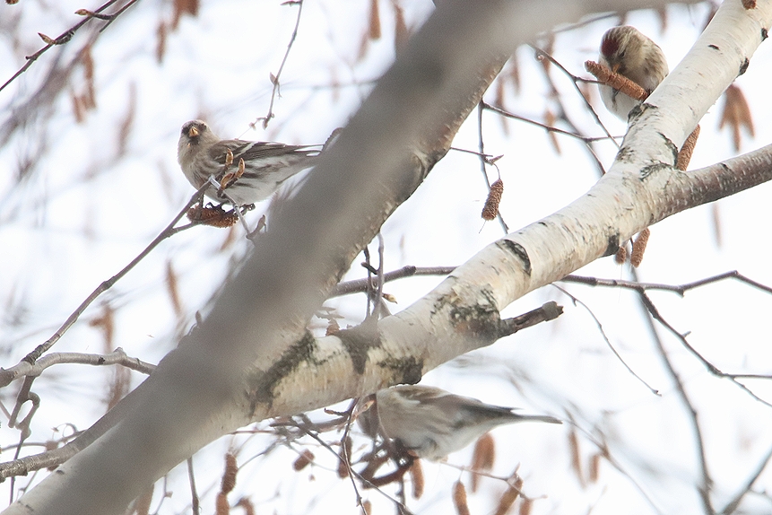 自由広場まで進み、そこでもヤマガラやゴジュウカラが見られていましたが、シラカンバの木にベニヒワ数羽がいました。
