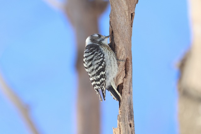 12月23日14時過ぎ、「ミュンヘンの森」付近でコゲラの「ギーッギッギッギー」という声が聞こえ、すぐにハイタカ雌がコゲラを追って飛んでいるのが見えました。
