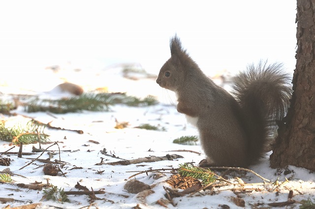 積雪後は園内で見る機会は減り、道路側の「遊具広場」辺りでちらほらと見られるくらいになりました。
