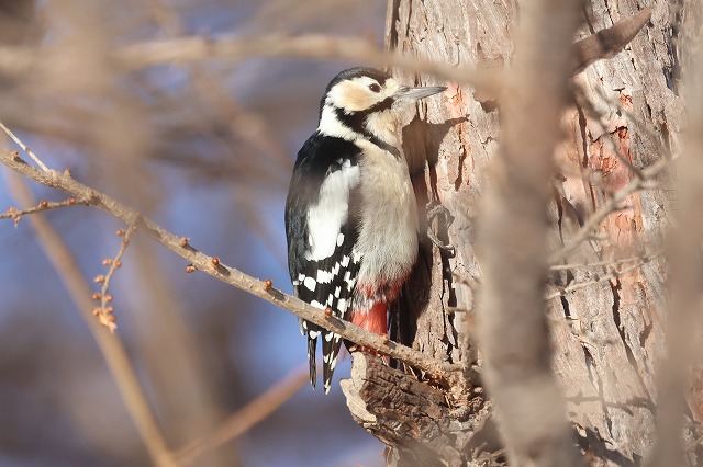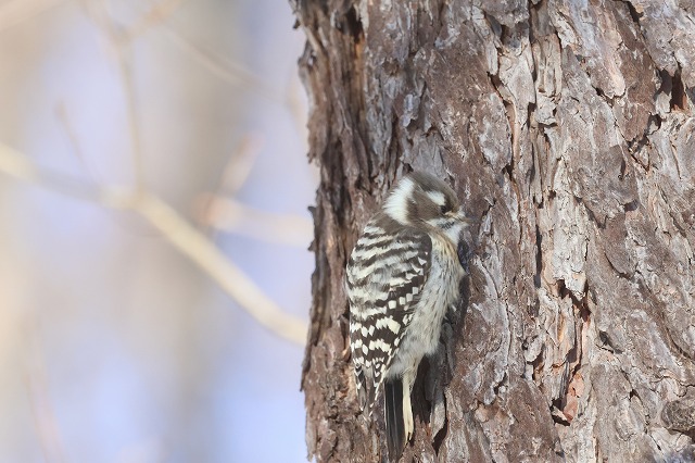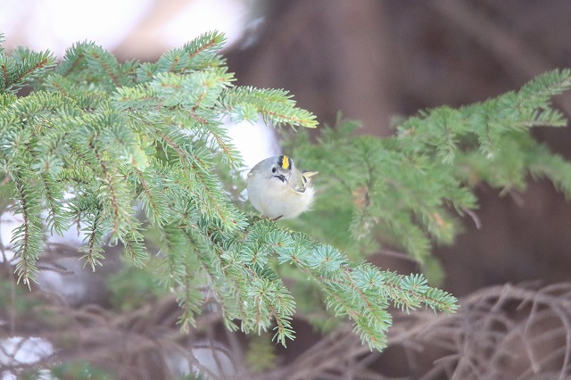 10時半頃から晴れ間がのぞいてきて、野鳥も少し動きだしてきましたが、クマゲラは鳴き声は出さずにいて、木をつつく音だけが聞こえました。