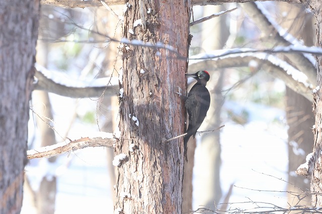 クマゲラが近くで見られるかどうかはほんとうにその日しだい、運しだいです。