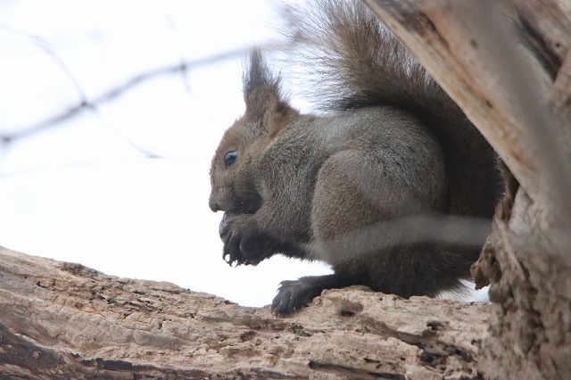 「「遊具広場の森」と「学びの森」付近で見られる機会が多いですが、エゾリスは積雪期は11時頃までに活動をやめて巣で寝るため、午後にはほとんど見られなくなります。