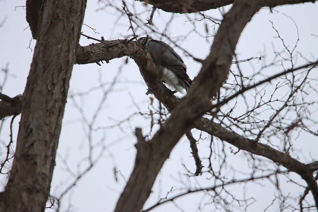 12月25日、「ピクニックテラス」付近にハイタカが飛んで来てニセアカシアの枝に少しの間とまっていたのが観察され、写真がその時のもので、雄成鳥と思われます。