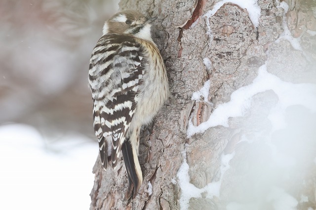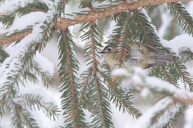 低い位置にも来ることがありますが、針葉樹の中では光の状態があまりよくないことが多く、写真的には良いチャンスにはなかなか巡り会えません。