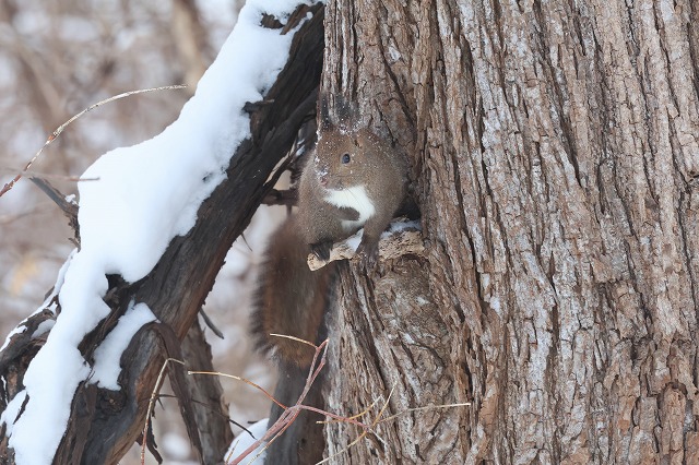 エゾリスは厳冬期は朝だけ活動し、10時から11時の間に寝るため、午後は見られません。