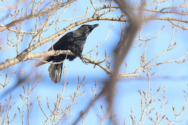 2月10日火曜日10時30分頃「森の家坂」の大きな栗の木に雄1羽が声を出さずに飛んで来たのが見えましたが、すぐに東側に、やはり鳴かずに飛んで見えなくなりました。