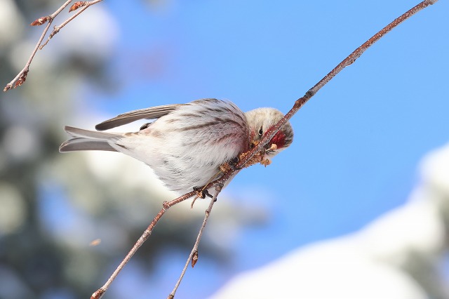 園内の主に針葉樹で見られる機会は少なくなく、写真のようにシラカンバの種子を食べる姿もまだ見られています。
