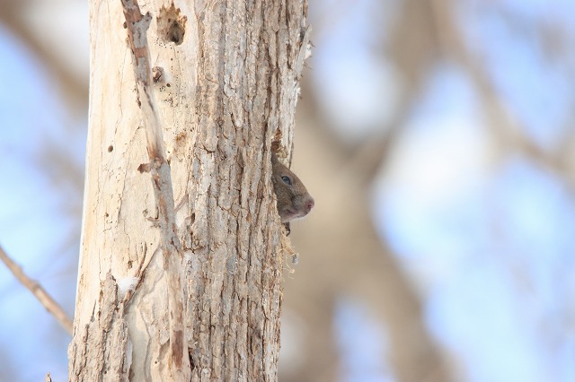 エゾリスがアカゲラの巣穴をねぐらに使うのは初めて見ました。