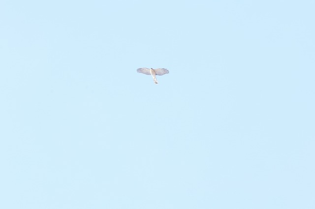 3月10日8時50分過ぎ、ハイタカ雌と思われる1羽がハシブトガラスに追われながら東から飛んで来て、ハシブトガラスを振り切ってから旋回上昇しながら西に流れる様子が見られました。