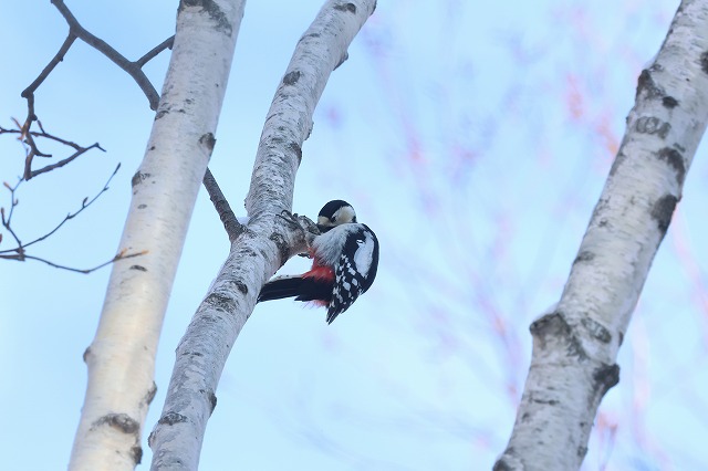 旭山記念公園では、アカゲラの雄同士の争いは毎年見られますが、オオアカゲラの争いをはっきりと観察できたのは今回が初めてのことでした。