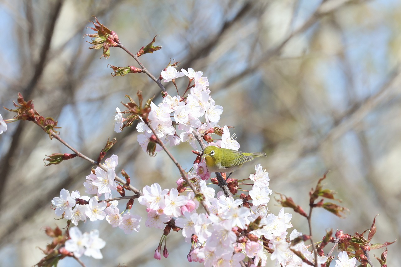 「サクジロー」=桜とメジロを撮影した方もおられるようですが、それ以外は高い位置にいることが多く、近くでの撮影機会は意外と少ないです。