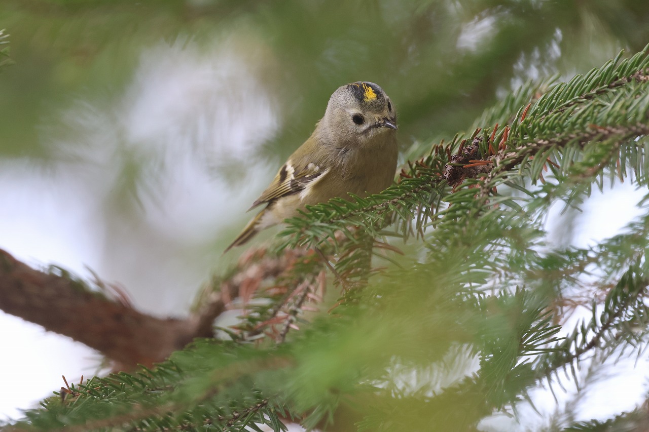 園内の主に針葉樹で見られ、囀りを聞く機会も多いです。