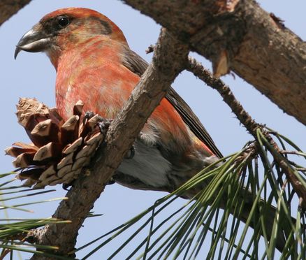 ●嘴の先が交差していて松ぼっくりの断片をはがして食べるのに適している