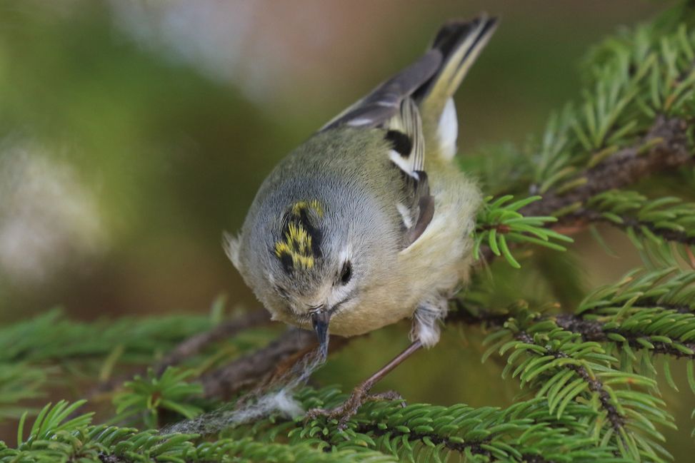 ●雄は頭頂部の黄色の中に赤い羽が混じっているが野外観察では隠れて見えないことが多い。雌は赤い羽がない