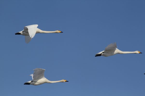 ●秋(北から南)と春(南から北)の渡りの時期に編隊で飛んでいる姿を旭山上空でも見られることがある