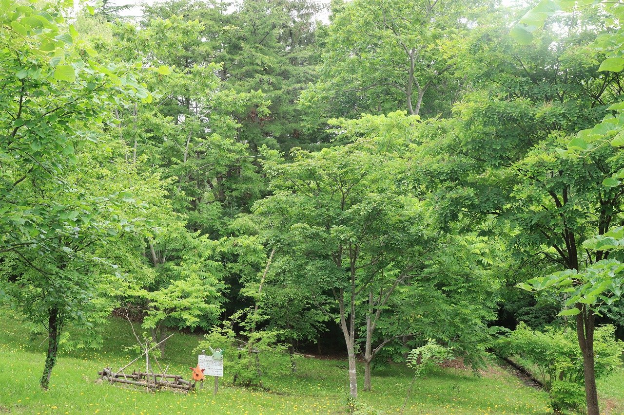 起伏に富んだ丘陵に園路が設けられており、自然歩道「藻岩山ルート」にも通じています。