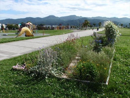 ときおりまぶしい日差しのさしていた本日の明日風公園は、徒渉池の水が気持ちよさそうでした。