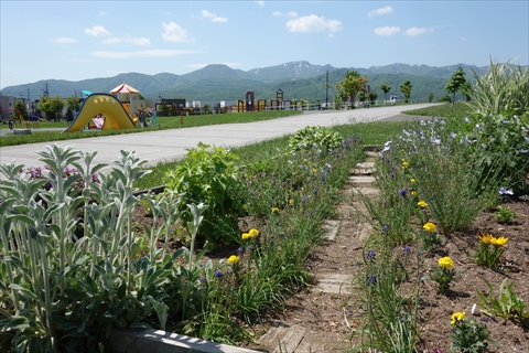 入り口にある、ボランティアの明日風フィオーレが管理する花壇は、夏模様になっていました。
