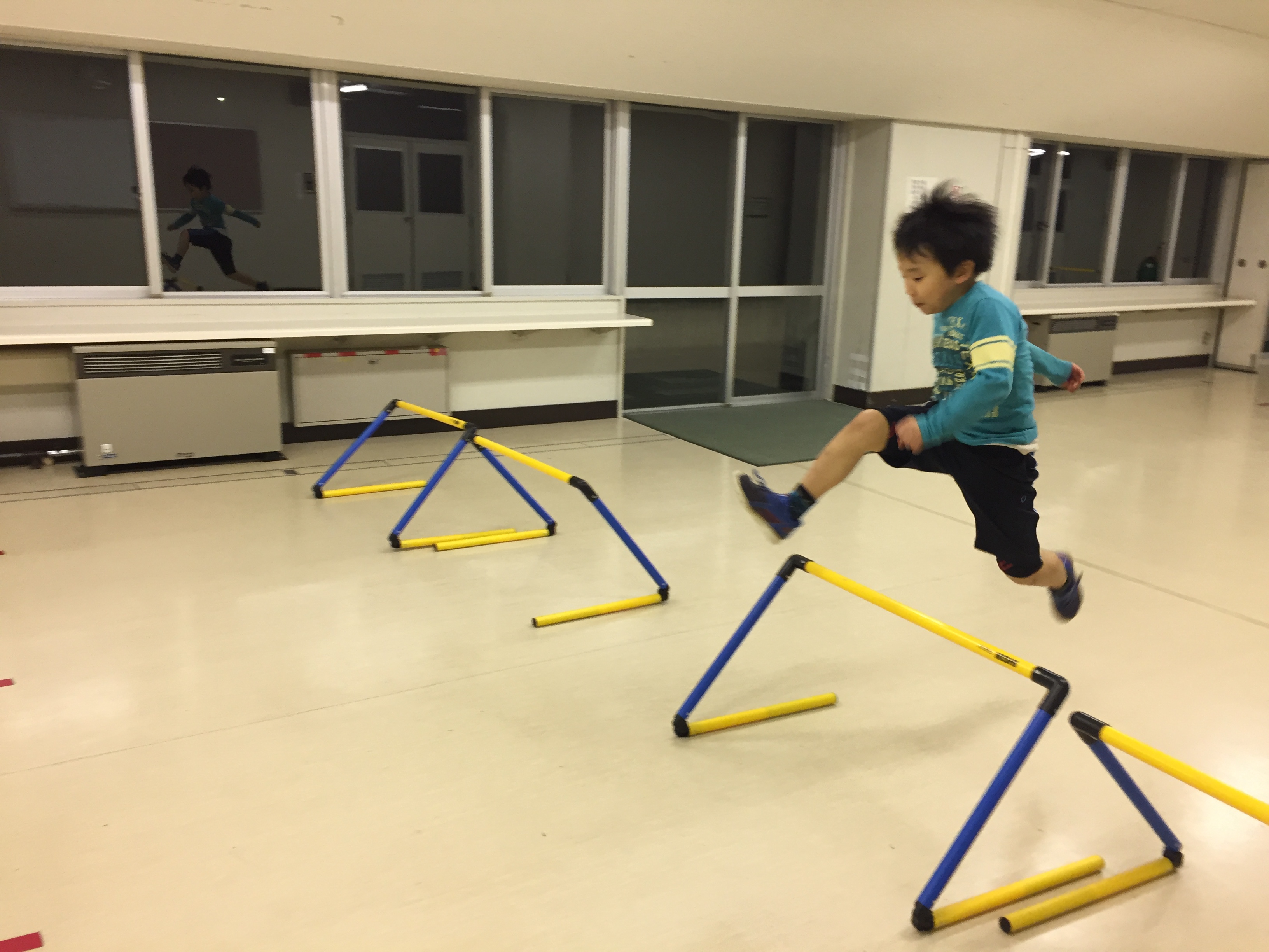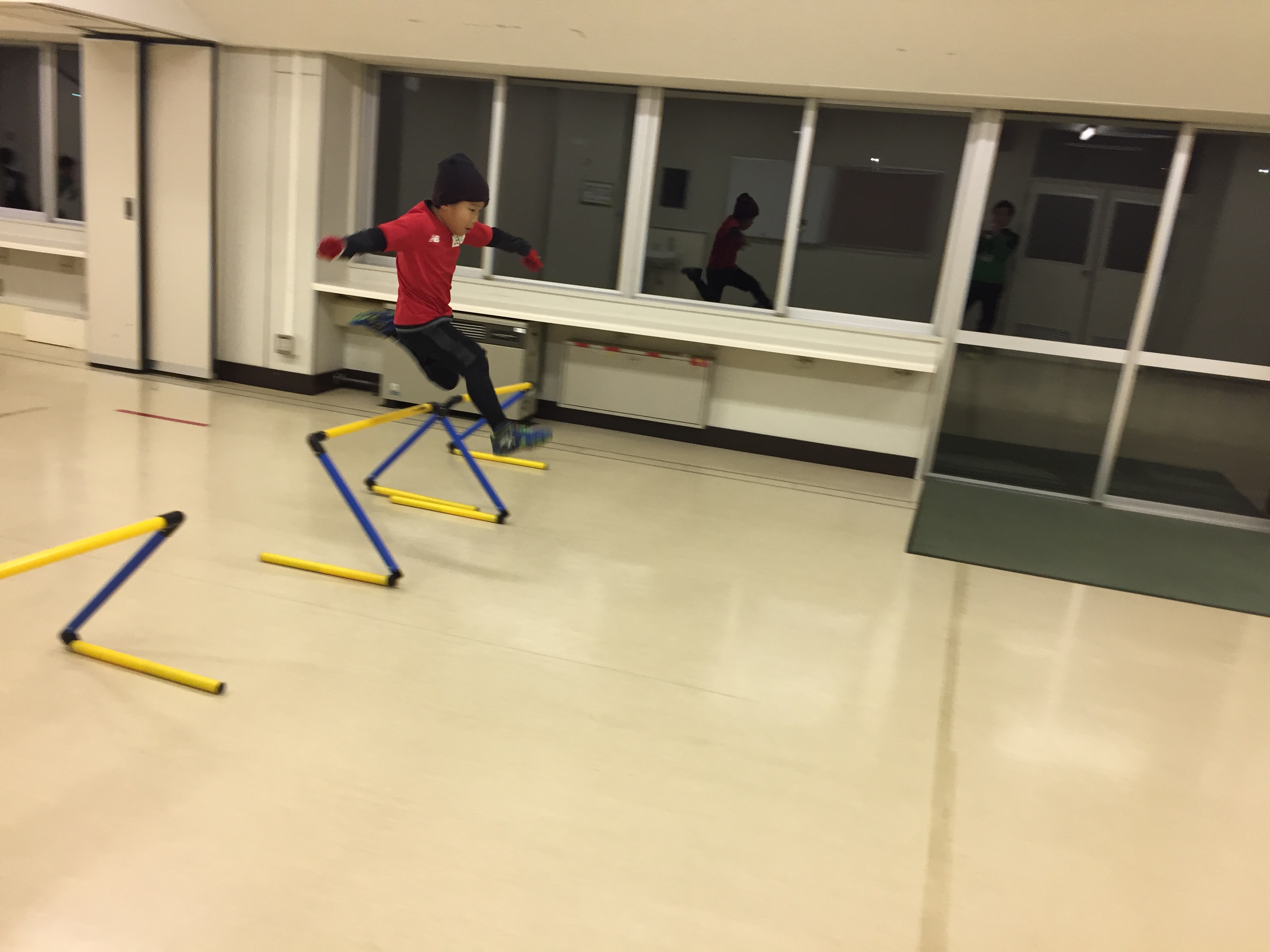 ハードルやマーカーコーンの障害をクリアしながらの持久走からスタート!