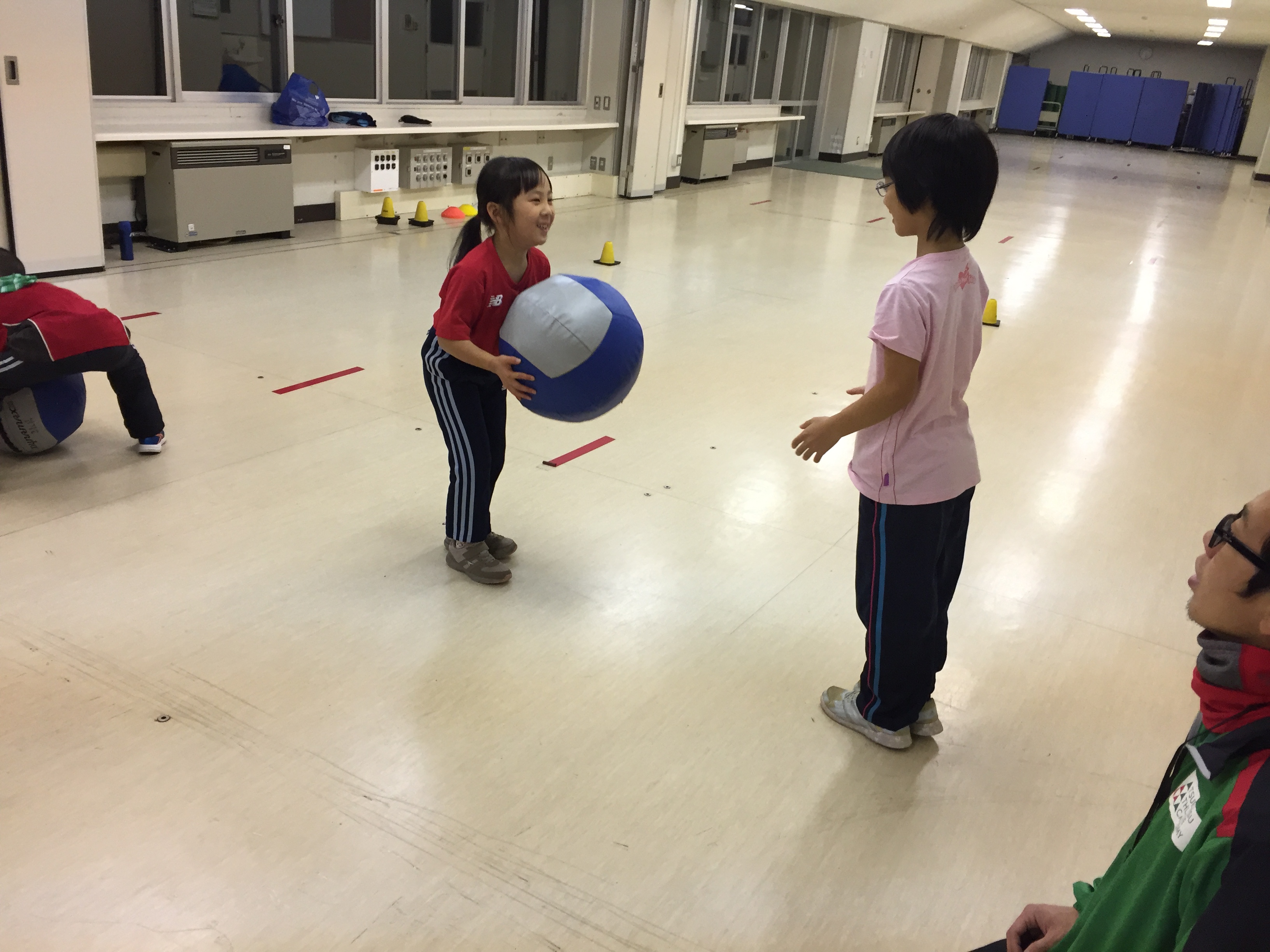 次に行ったのは前回から登場の「メディシンボール」を使った運動!