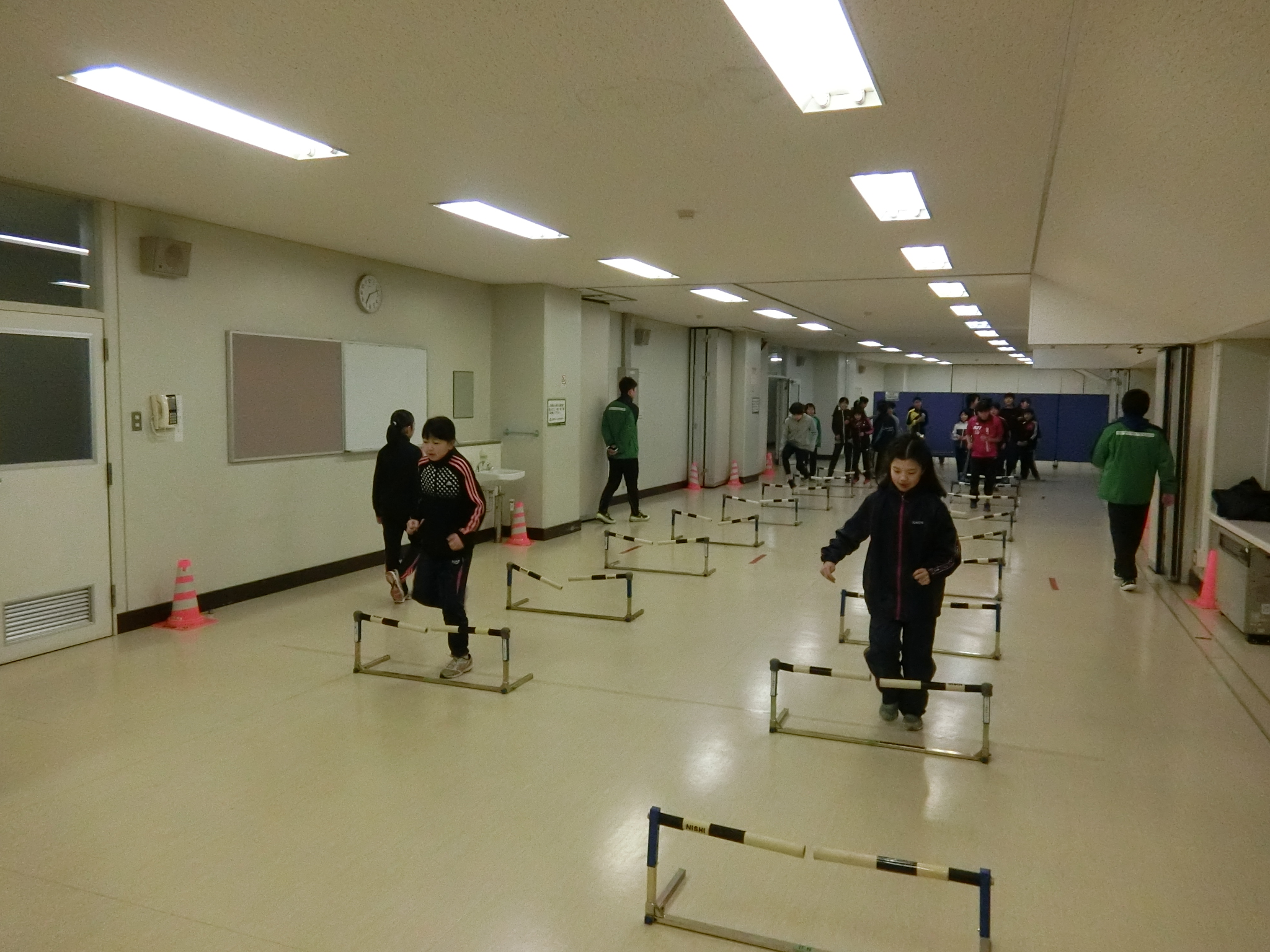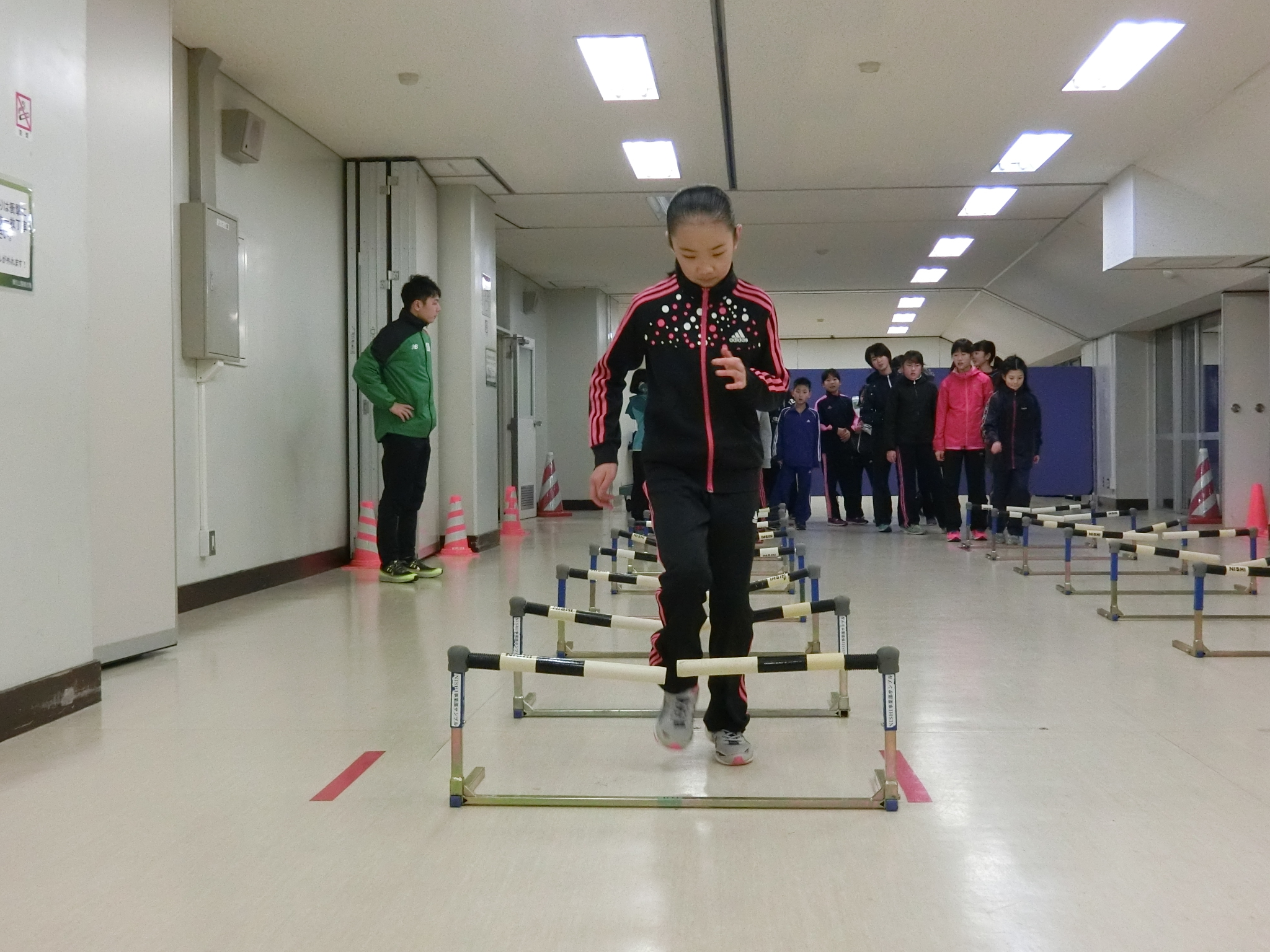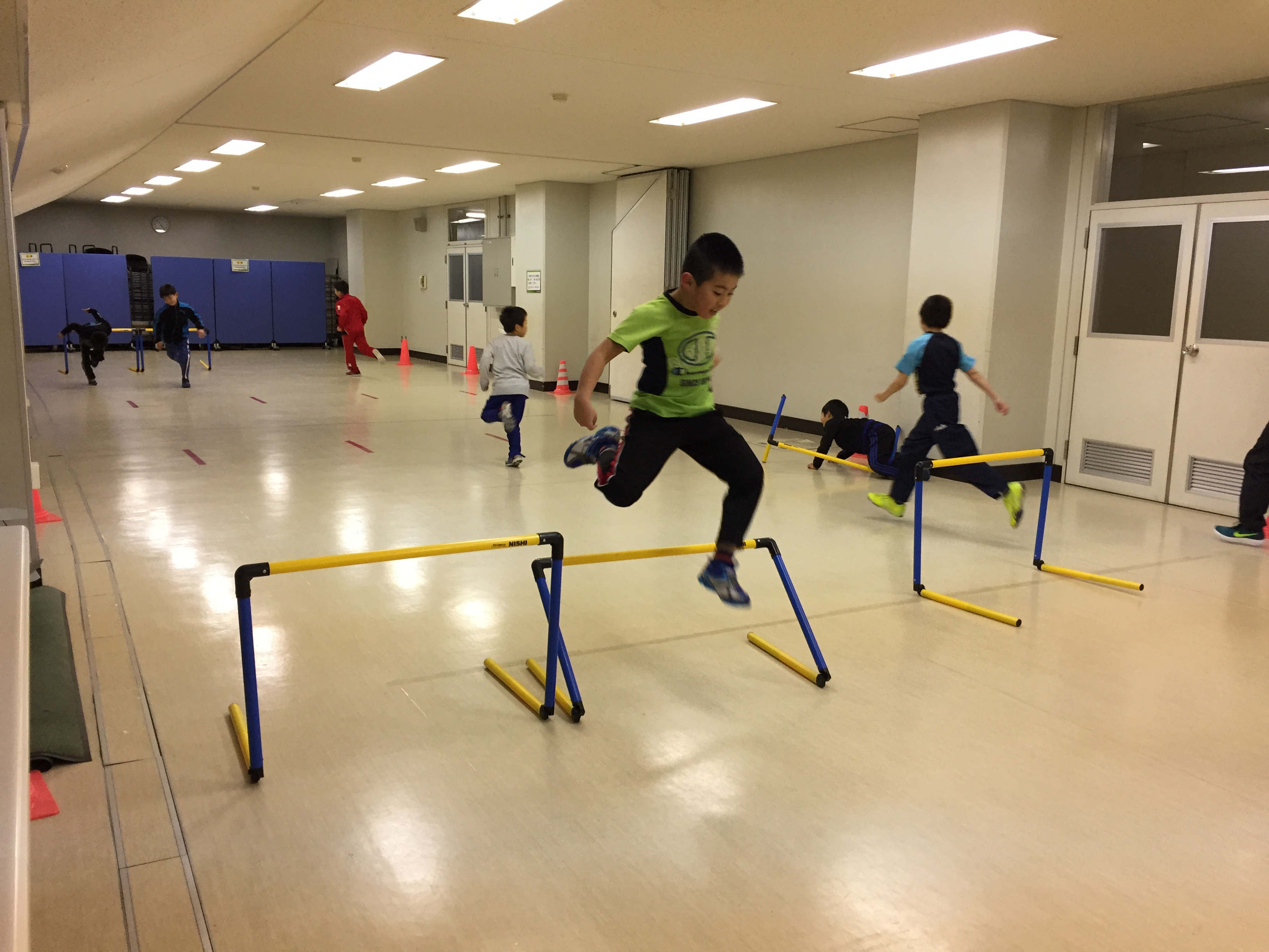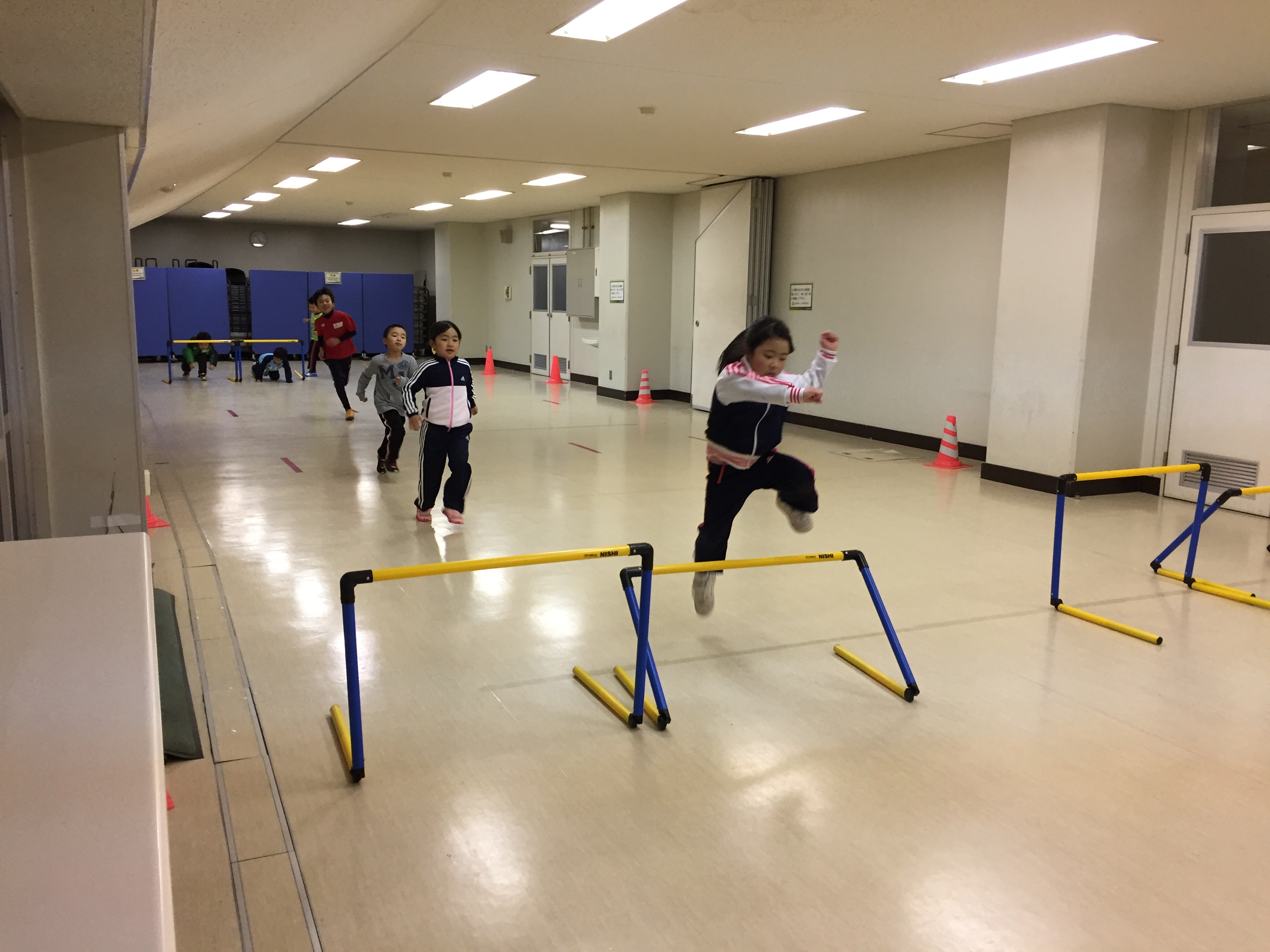ハードルを使った持久走でさらに体を温め、次に行ったのは「陸上っぽい動き」