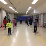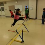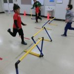 ハードルを使った持久走は、慣れない動きを取り入れ行いました。