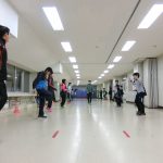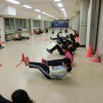 前後、左右に細かなステップを時間内に何回出来るかをペア同士で勝負!