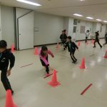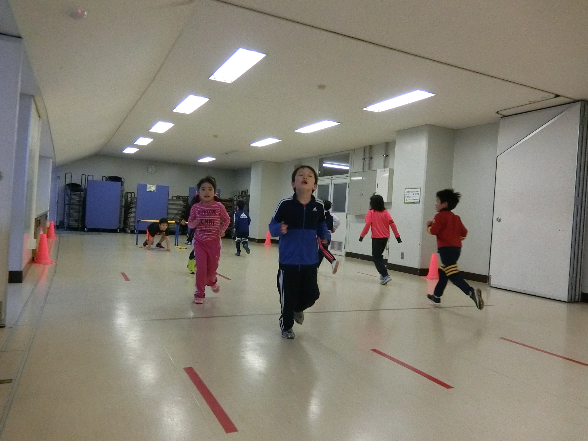 厚別で活動時はお馴染みとなった「なわとび」ハードルをくぐったり飛び越えていく「持久走」からスタート。