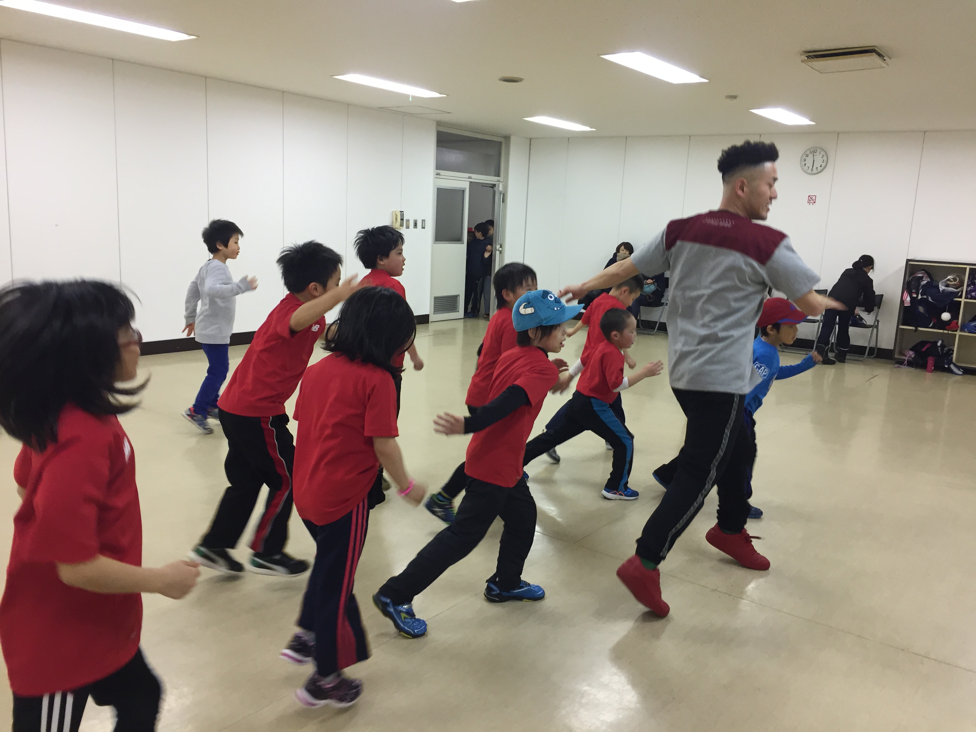 今では、ハードルやマーカーなど「モノ」に合わせて動いてきましたが、「音」に合わせて動くことをテーマに、リズム感や、多様性を身につけるのが目的です。