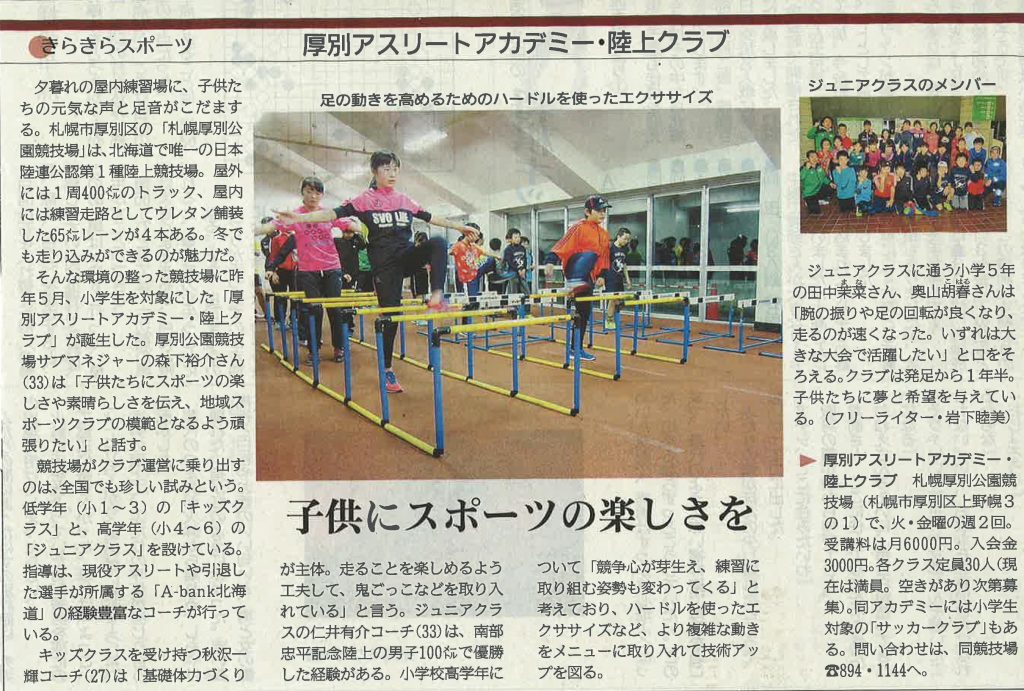 11月24日(金)発行 北海道新聞夕刊号にAAA陸上クラブが掲載されました!