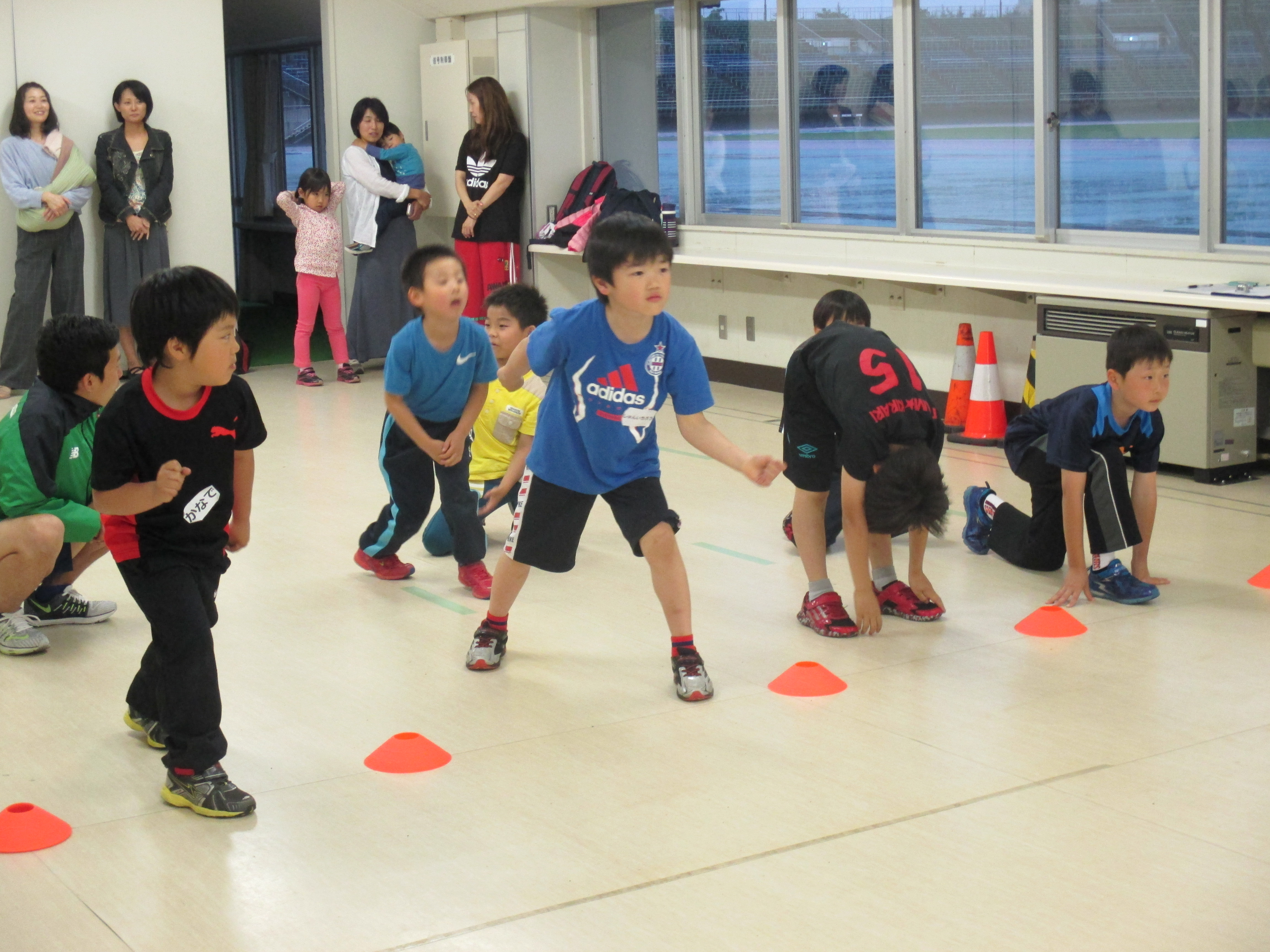 運動会が終わった子、まだこれからの子がおりましたが、仁井コーチが教える「走り方のコツ」にはみんな真剣に聞き入ってます。