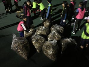 制限時間内にどれだけ落ち葉を集められるか、みんな必死に取り組みました!