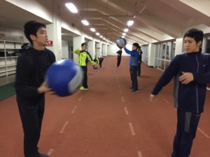 また、ハードルドリルやメディシンボールを使ったメニューにもすっかり慣れ、どんどん新しいメニューが増えてきています。