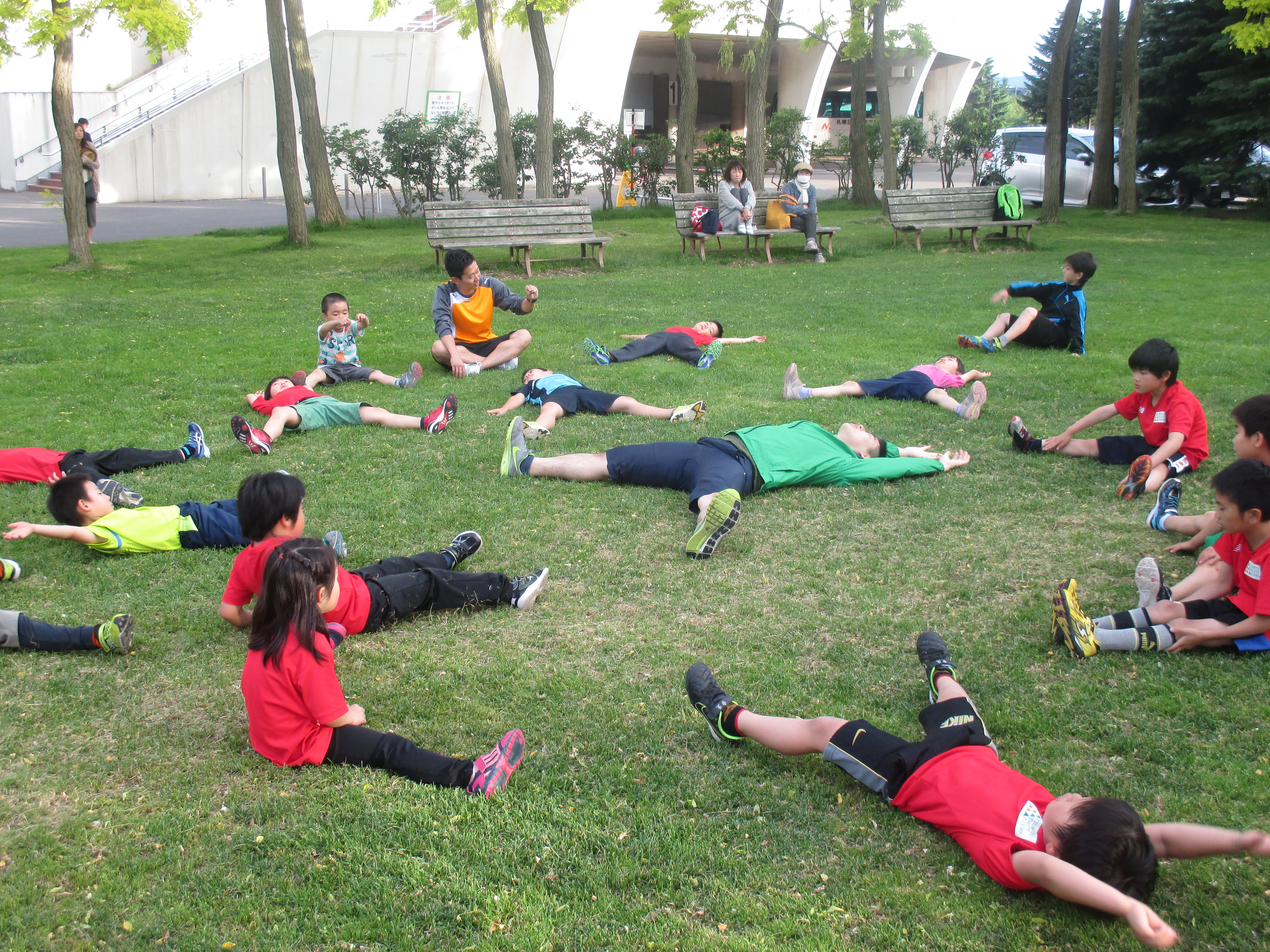 今回は公園内をグルッと一週、「外周走」を行いました。