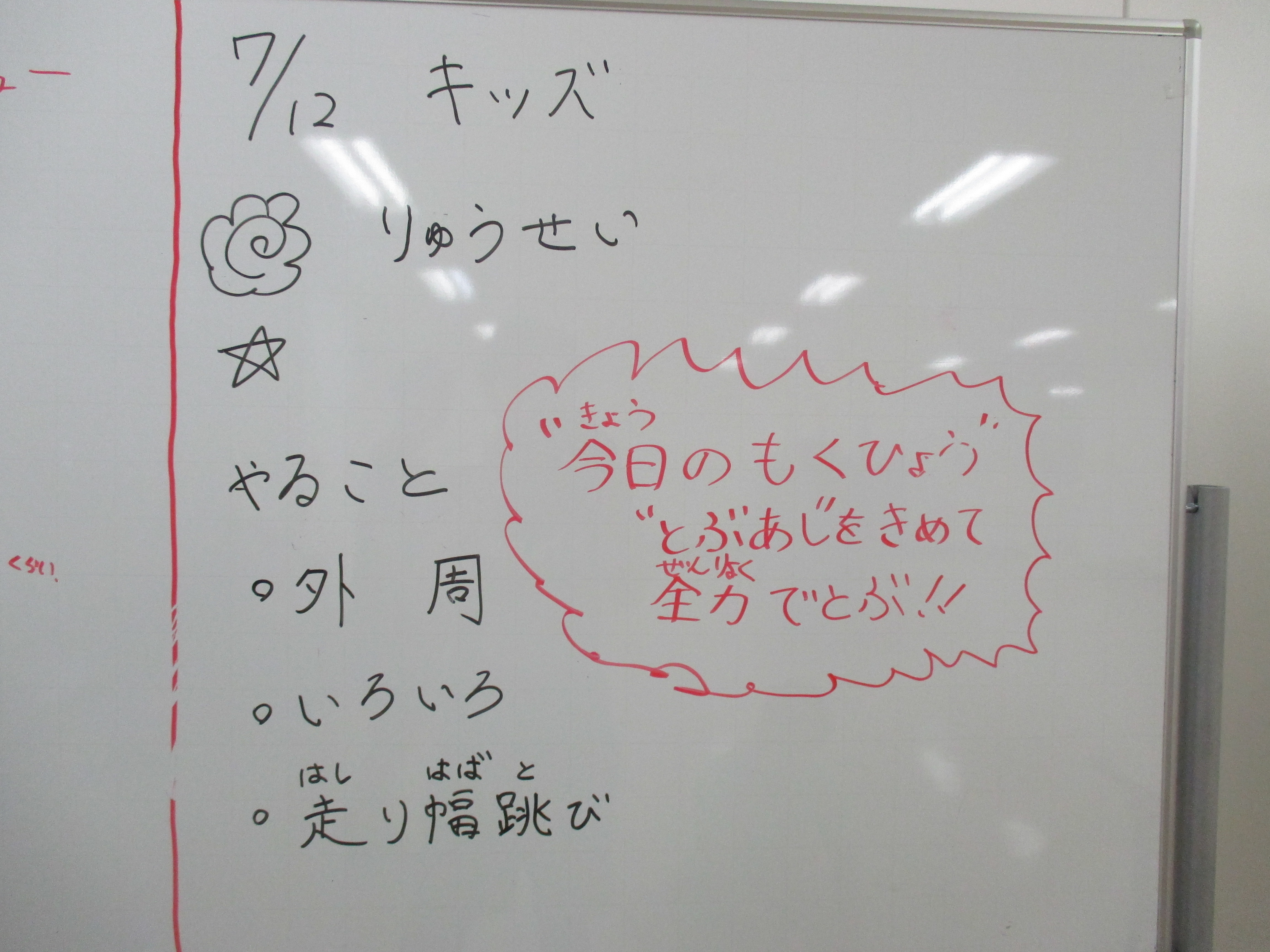 キッズは幅跳びに初挑戦し、ジュニアはテーマを持ち活動します。