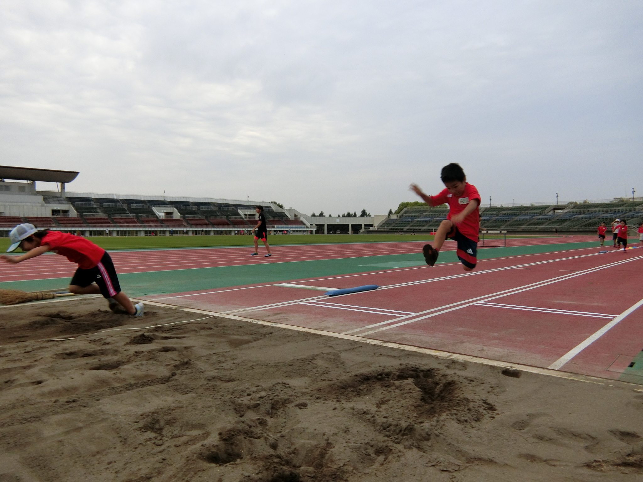 助走の取り方や、空中姿勢などのアドバイスをうけながらガンガン跳びまくる生徒たち!