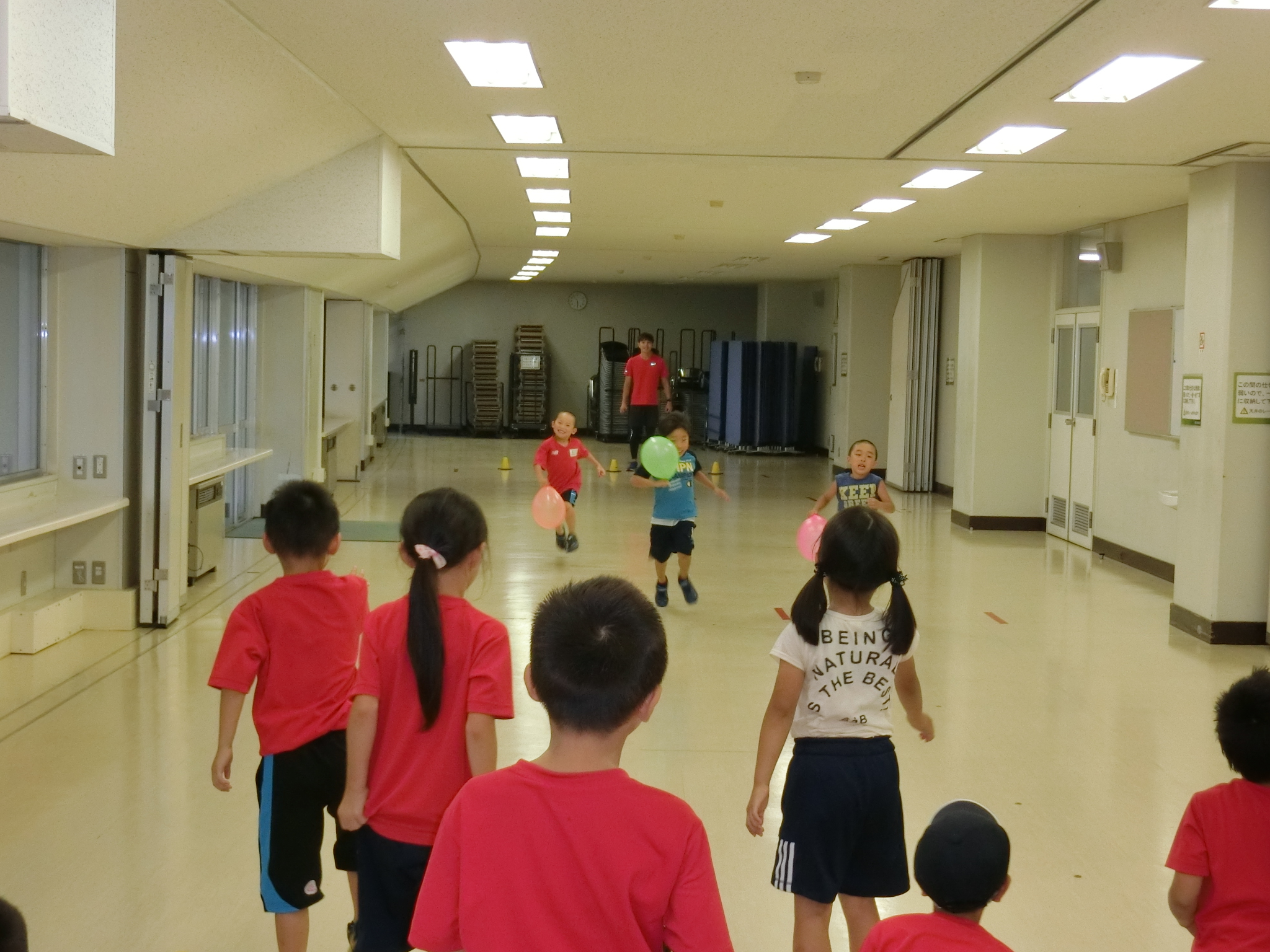 風船を割らないよう、ペアとなりリフティングで繋げたり、最後には風船をバトンとして繋ぐリレーを行いました!