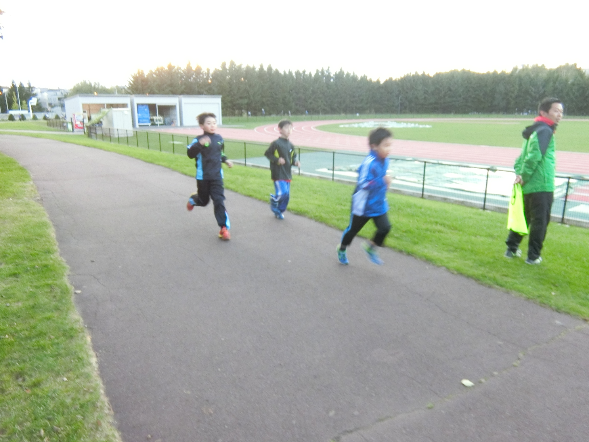 今回の外周走は、補助グラウンドの外周を5分間走りました!