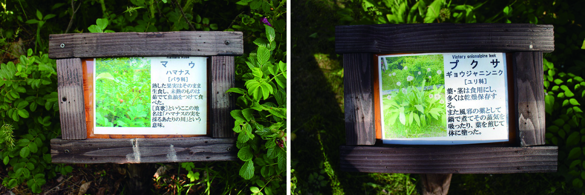資料館前の庭「アイヌの野草園 マウタ・ミンタラ」では、一つ一つの植物に