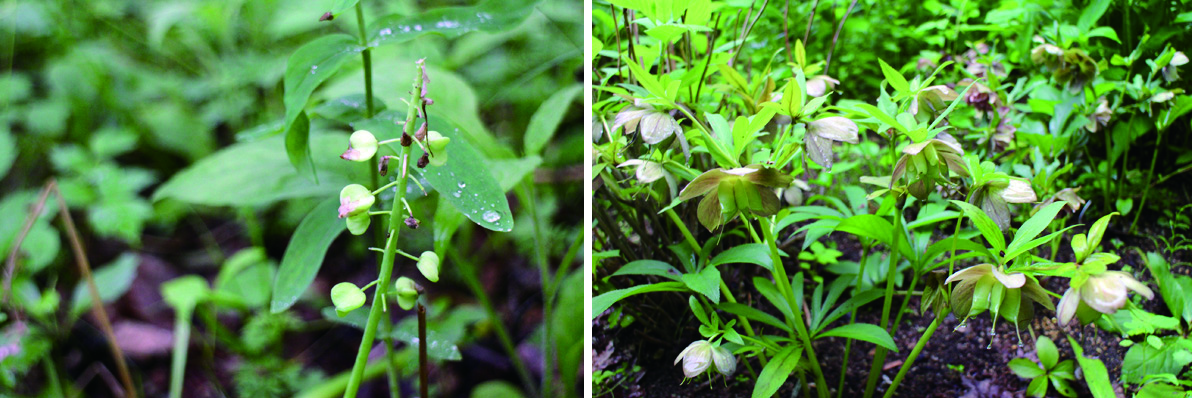 ↓タネができているムスカリ(左)とクリスマスローズ(右)