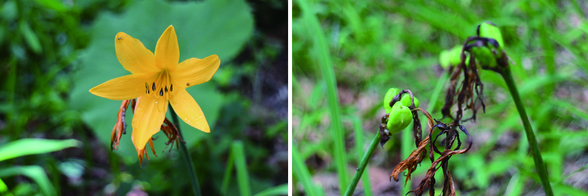 散策路ではエゾカンゾウを群落で見ることも。